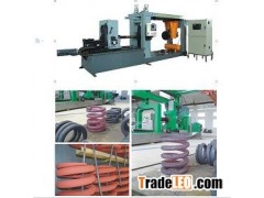 The Hot Wound Spring Coiler also called hot coiling machine for heavy duty springs such as locomotive springs or car springs or leaf springs with CNC three servo control (principal axis, pitch, helix angle orientation)is controlled by the Spanish FAGOR CNC system and starts,clamps and unwinding automatically. The machine researched by Wintime Machinery Co.,Ltd is available for both left and right turn compression springs like heavy duty springs for railway. Taped or round bar is fed. Max spindle is 50 rpm and max spring size is F 60 (W.D) *F 500 ( O.D) * 1200 (length) mm and can be custom-designed.All parameters like start, pitch, spindle, unwinding are adjustable and set by computer.
